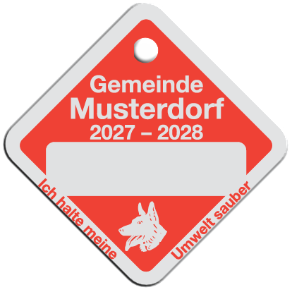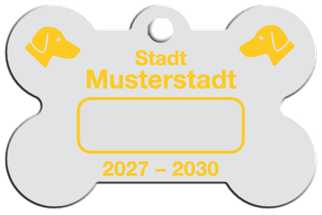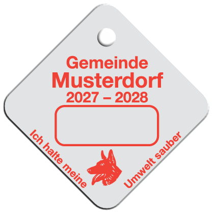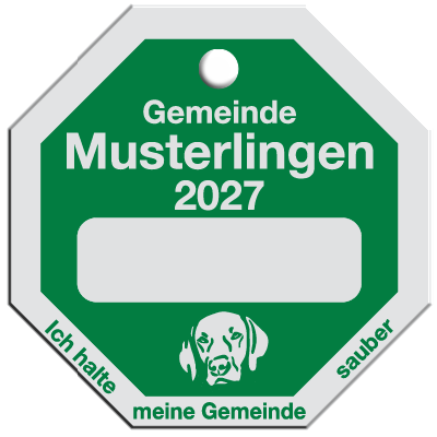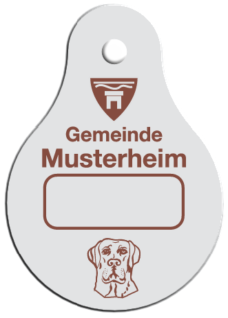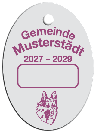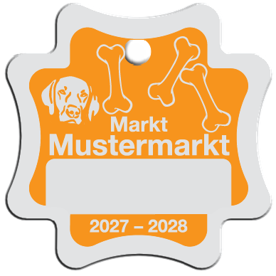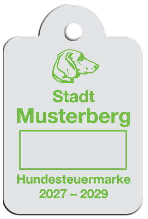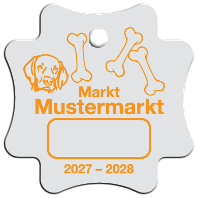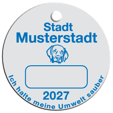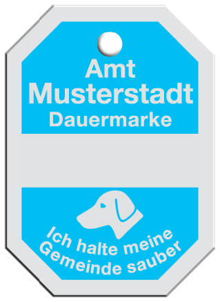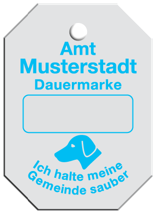Wir fertigen Hundesteuermarken aus 1,0 mm Aluminium AIMg1 hart, silbermatt eloxiert.